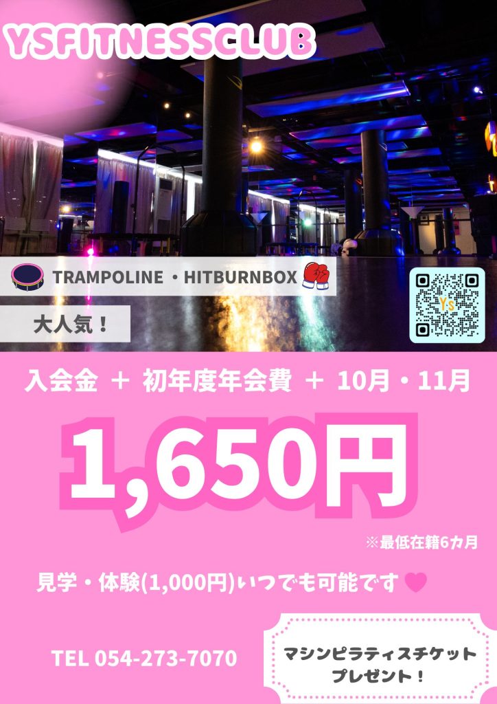 10月後半はさらにお安く1,650円に!マシンピラティス1回無料券も!
